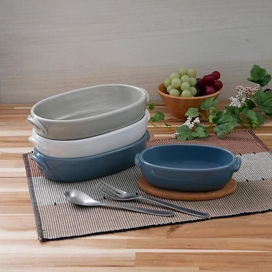 調和がとりやすい落ち着いたカラーのグラタン皿です。